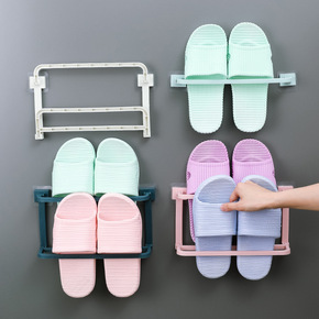 卫生间浴室拖鞋架墙壁挂式折叠厕所沥水收纳免打孔毛巾...