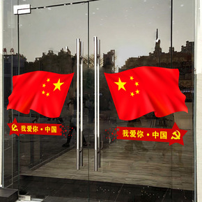 国庆节玻璃门贴纸商场珠宝首饰店铺布置墙贴爱国橱窗装...