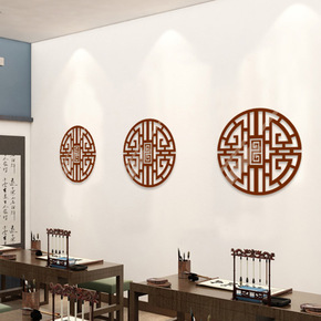 中式圆形玻璃门客厅背景装饰贴品古典窗花对角亚克力立...