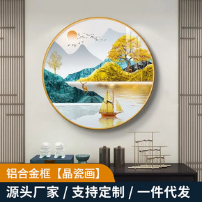 玄关挂画轻奢现代圆形客厅沙发背景墙装饰画简约大气走...