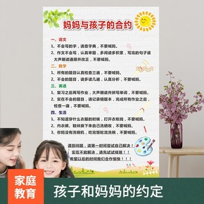 孩子和妈妈的约定墙贴小学生儿童励志学习可移除卡通防...