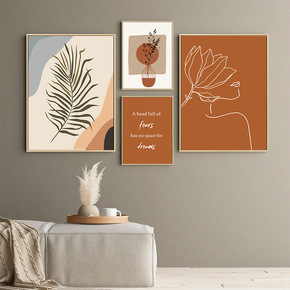 北欧卧室波西米亚风装饰画橙色字母客厅沙发墙画莫兰迪...