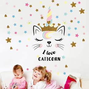 跨境梦幻独角兽贴纸客厅卧室温馨床头卡通儿童房墙壁装...