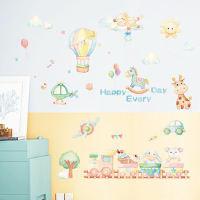 卡通热气球墙贴画儿童房装饰教室幼儿园墙面装饰画自粘...