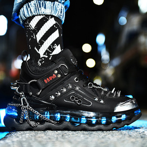 老爹鞋全撑气垫挂链带钉黑色增高厚底跑步男人英雄本色...
