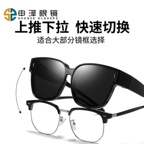 套镜近视太阳眼镜夹片偏光防紫外线强光大框开车专用墨...