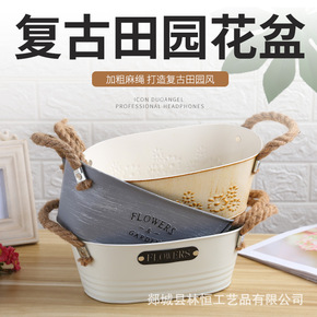 厂家批发壁挂铁艺桶墙面插花 复古吊篮花篮墙壁悬挂铁...