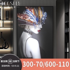 竖版入户玄关装饰画现代简约客厅落地走廊过道尽头背景...