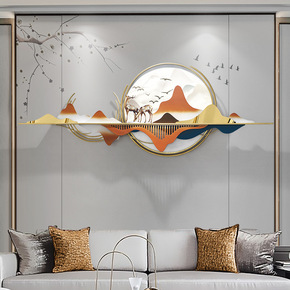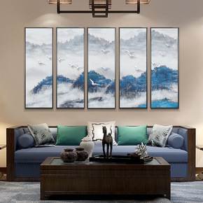 现代轻奢客厅装饰画山水画横版背有靠山沙发背景墙挂画...