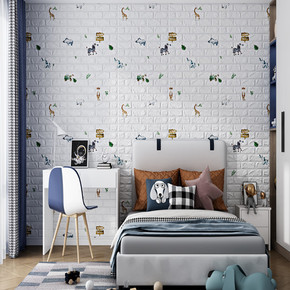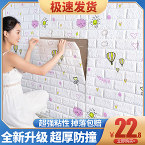 墙纸自粘卧室温馨饰3d立体儿童防撞墙贴纸防水防潮泡...