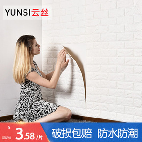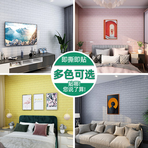 墙纸自粘3d立体墙贴卧室温馨装饰背景墙面壁纸泡沫砖...