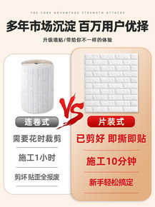 墙纸自粘3d立体墙贴防水防潮卧室温馨连卷泡沫砖背景...