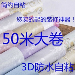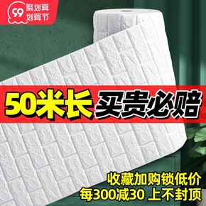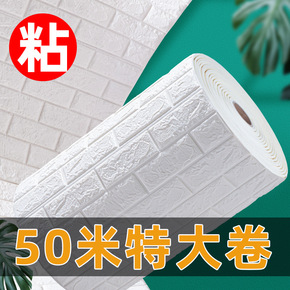 50米大卷防水墙纸自粘卧室温馨客厅背景墙3D立体自...