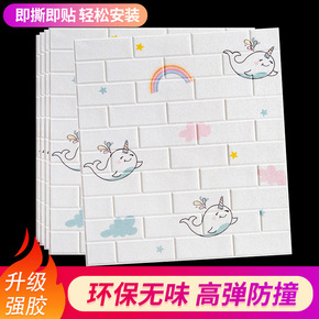 自粘3d立体泡沫墙贴卡通卧室温馨墙纸儿童房装饰软包...