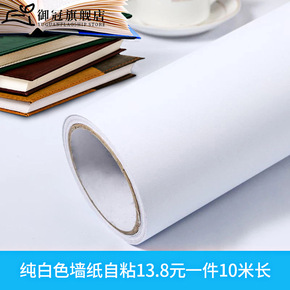 简约纯白色墙纸自粘10米防水防潮客厅温馨宿舍卧室电...