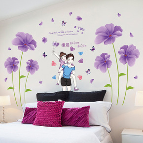 创意花朵墙贴温馨浪漫客厅卧室床头背景墙纸自粘贴画宿...