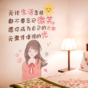 微笑励志墙贴纸女孩公主房间卧室床头墙壁纸装饰宿舍贴...