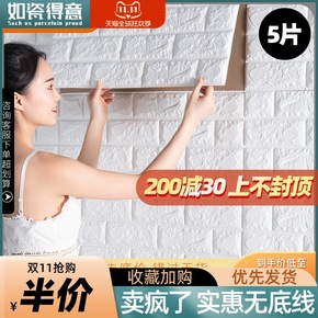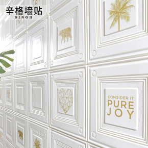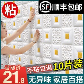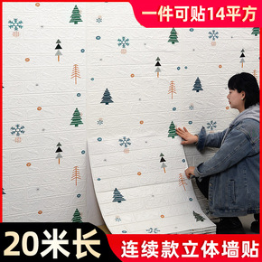 墙纸自粘3d立体泡沫墙壁纸家用客厅卧室温馨防水防潮...