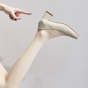 潮牌2020秋冬新款高跟鞋女鞋韩版方头时尚浅口单鞋...
