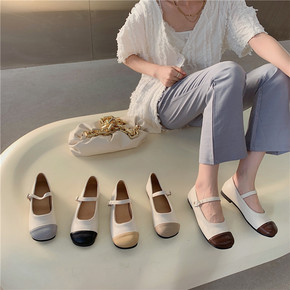 法式粗跟复古玛丽一字扣带方头奶奶鞋2022年夏季新...
