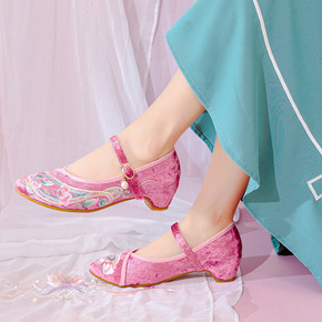 绒面绣花鞋女古风鞋子女民族风搭配旗袍的鞋子老北京布...