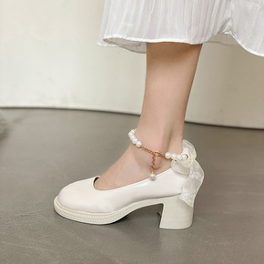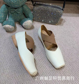 芭蕾高跟鞋方头单鞋玛丽珍鞋2021新款法式交叉绑带...