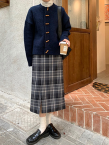 【加厚高腰裙】冬季厚款半裙港风复古时尚百搭中长款菱...