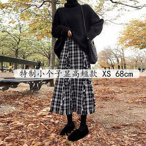 145小矮个子秋冬格子流苏半身裙女150cm显高1...