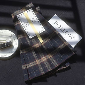 复古格纹工字褶高腰垂感A字裙短裙半身裙西装裙...