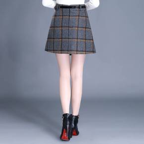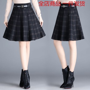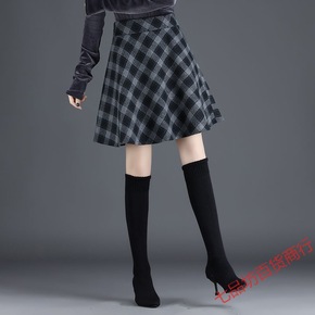 秋冬新款格子毛呢半身裙女大码妈妈裙子中长款高腰裙字...
