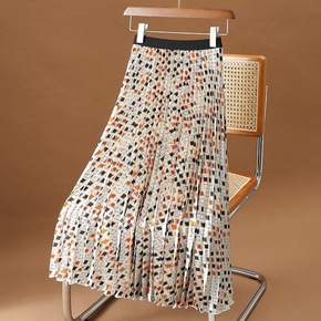 薄款气质时尚小方格百褶半身裙女夏季新款百搭垂感中长...