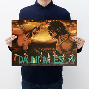 【C173】进击的巨人C款复古牛皮纸海报学校文具店...