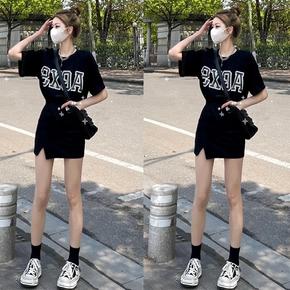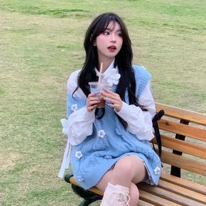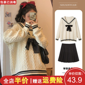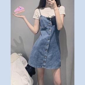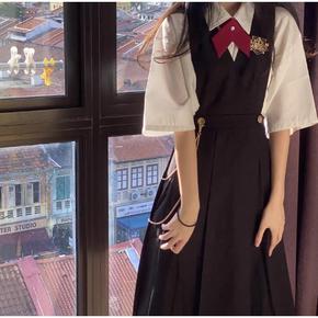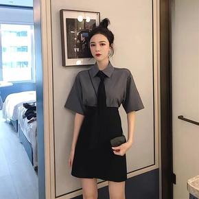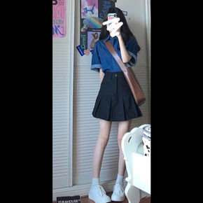 蓝色衬衫黑色短裙两件套学院风炸街小个子少女休闲职业...