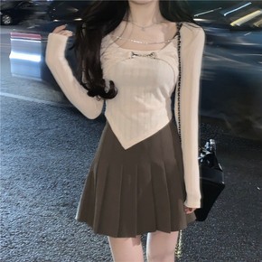 白色上衣百褶短裙两件套甜辣风盐系炸街小个子辣妹穿搭...