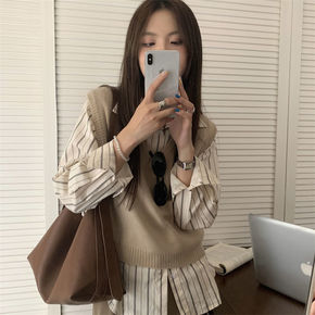 蓝色衬衫黑色短裙两件套御姐风轻熟气质小个子辣妹休闲...