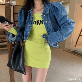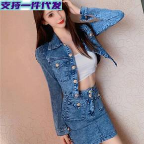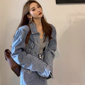 早春韩系新款牛仔背带裙套装港风复古洋气小个子显高炸...