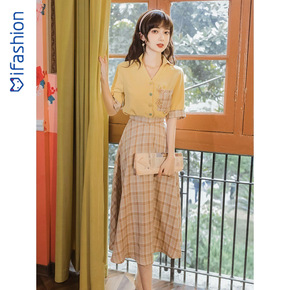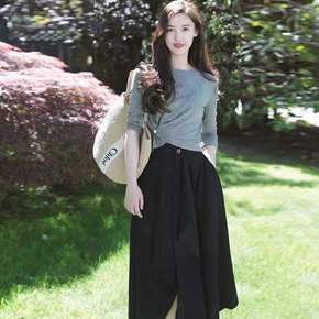 气质小清新洋气减龄港风套装女复古chic炸街半身裙...