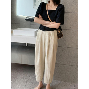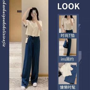清纯甜美女装港风复古chic小个子炸街夏装休闲阔腿...