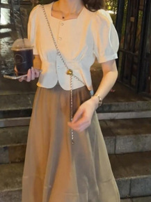 2022年夏季夏季女装港味复古小个子盐系穿搭名媛小...