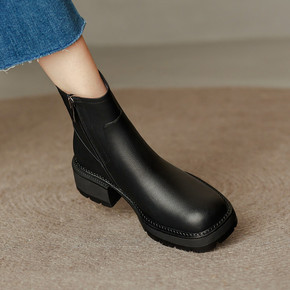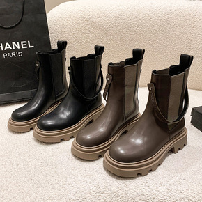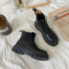 马丁靴女英伦风2022秋冬单靴新款时尚厚底圆头复古...