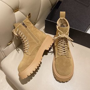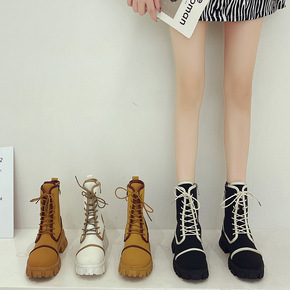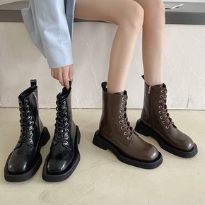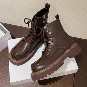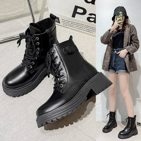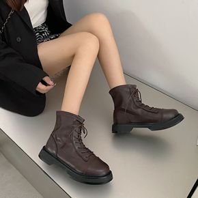 英伦风马丁靴女2022秋冬侧拉链短筒靴复古系带厚底...
