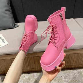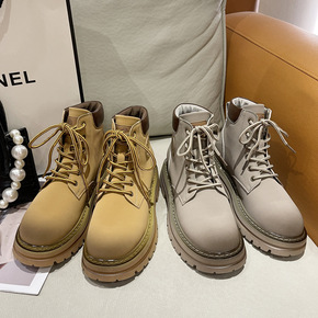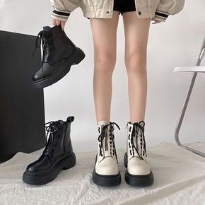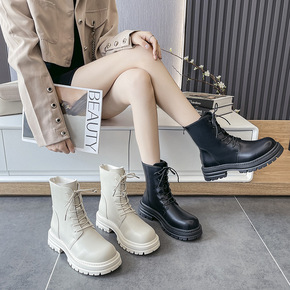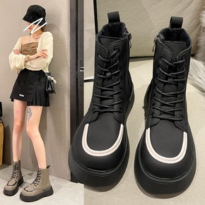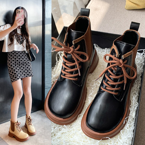马丁靴女英伦风2022年秋季新款时尚系带显瘦厚底拼...