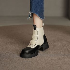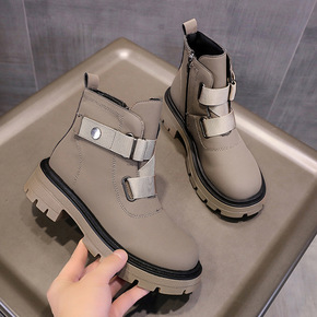 英伦风马丁靴女圆头方根2022秋冬新款皮带扣时尚短...