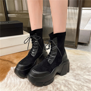 网红炸街厚底松糕系带复古马丁靴女2022冬新款英伦...