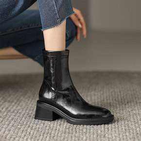 马丁靴女2022年春秋新款复古英伦风粗跟短靴厚底圆...
