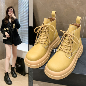 【大黄靴】马丁靴女2022新款百搭秋冬季复古英伦风...