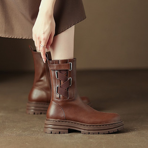 真皮马丁靴女春秋季2022新款棕色英伦风复古小短靴...