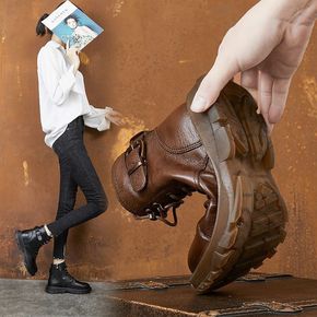 之可复古增高马丁靴女2022年新款时尚小个子短靴女...