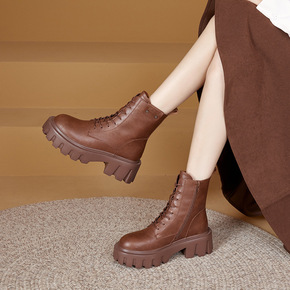 复古英伦风厚底短筒马丁靴女2022冬新款圆头系带小...