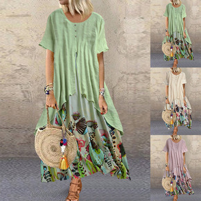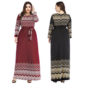 2022夏季女装亚马逊爆款跨境大码连衣裙圆领长袖印...